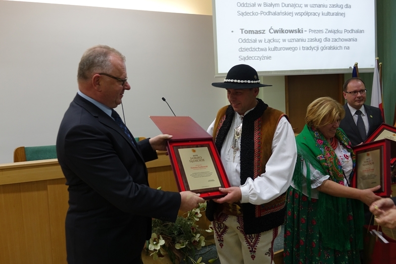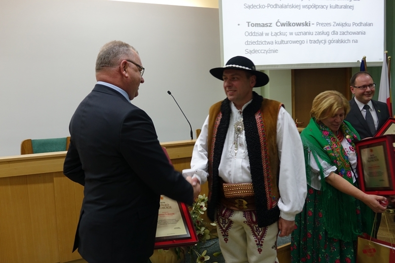 W dziedzinie kultury wyróżnieni zostali, między innymi, Bożena Bulanda z Zespołu Regionalnego „Lipniczanie”, który zdobył w bieżącym roku II miejsce na Międzynarodowym Festiwalu Folkloru Ziem Górskich w Zakopanem, a Bożena Bulanda otrzymała tam tytuł Najpiękniejszej Góralki Festiwalu oraz Danuta Rams – członkini Związku Podhalan Oddział w Łącku, hafciarka strojów regionalnych. Wyróżnienie Starosty Nowosądeckiego, odznakę „Złote Jabłko Sądeckie”, za szczególne zasługi dla rozwoju kultury i współpracy Sądecko-Podhalańskiej, otrzymali: Józefa Kolbrecka Prezes Związku Podhalan Oddział w Białym Dunajcu oraz Tomasz Ćwikowski Prezes Związku Podhalan Oddział w Łącku.