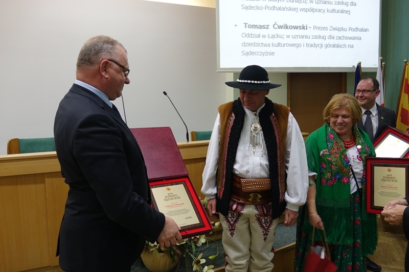 Główne wyróżnienie zbiorowe, statuetkę „Złote Jabłko Sądeckie” otrzymał Związek Podhalan Oddział w Łącku, w uznaniu szczególnych zasług dla zachowania i popularyzacji dziedzictwa kulturowego Sądecczyzny. Nagrodę, odebrała delegacja Oddziału w składzie: Prezes Tomasz Ćwikowski, Dorota Ćwikowska, Aleksander Grela, Grzegorz Czepelak, Małgorzata Cebula, Danuta Rams. Na zakończenie uroczystości krótki koncert dała kapela góralska z Łącka, w składzie: Piotr Krzywdziński, Andrzej Talar i Tomasz Plechta.