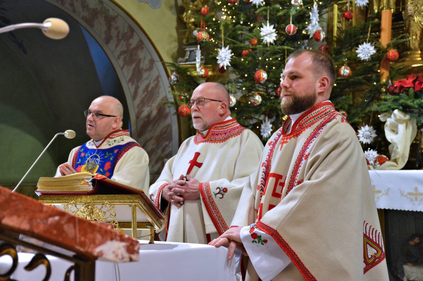 Uroczystości rozpoczęły się o godzinie 16.00 Mszą Świętą odprawioną w kościele parafialnym w Łącku, koncelebrowaną przez ks. kapelana dr. Stanisława Kowalika, ks. proboszcza dr. Czesława Noworolnika oraz ks. Jana Kurka. Liturgia miała podniosły i uroczysty charakter, podkreślający duchowy wymiar spotkania opłatkowego.